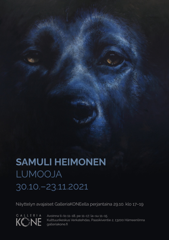 Näyttelyni Lumooja on kunnianosoitus koirille. Koirat ja sudet ovat pitkään olleet maalausteni keskeinen aihe. Olen aiemmin tehnyt muotokuvia kuvitteellisista ja todellisista susista. Minua kiehtoo eläimen kasvojen moninaisuus ja persoonallisuus. Maalatut muotokuvat ovat yritystä virittää oma mieli tunnistamaan eläimen kasvot yhtä tarkasti ja luotettavasti kuin ihmisen kasvot. Me ihmiset olemme erittäin taitavia lukemaan toisten ihmisten kasvoilta tunnetiloja ja aikeita. Ehkä voisin oppia lukemaan myös eläimen kasvoja yhtä monipuolisesti.