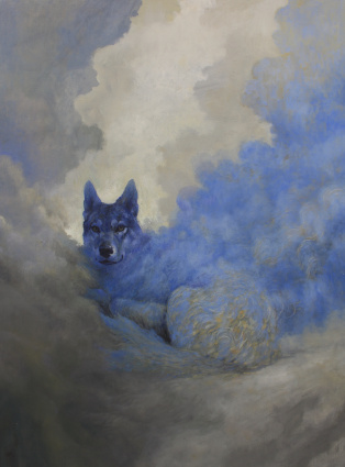 Susien ja koirien muotokuvat muodostavat uusimman osuuden. Väriskaala on rajattu tietoisesti siniseen, ruskeaan ja harmaaseen. Tavoittelin kuvien värimaailmassa tietynlaista rauhallisuutta, joka antaa kuvattaville hahmoille mahdollisimman paljon tilaa ja elinvoimaa. Uusien susi- ja koiramuotokuvien lähtökohta on useimmiten ollut maalauksellinen. Olen tavoitellut jotain tiettyä värin, valon tai materiaalin ilmiötä. Lähtökohta on minulle uusi, koska olen aina aikaisemmin aloittanut tarinasta. Ilokseni kuitenkin huomasin etteivät tarinat kadonneet minnekään vaan ne tulivat väistämättä maalauksiini. Avainteos tässä sarjassa on ”Kuningas”, joka kuvaa elämää suurempaa hahmoa kaikkine vahvuuksineen ja heikkouksineen. Sen rinnalle syntyi kolme muuta muotokuvaa, joissa sinisen ja ruskean vaihtelu ja sekoittuminen synnyttää hiljaista draamaa kasvojen valoissa ja varjoissa.